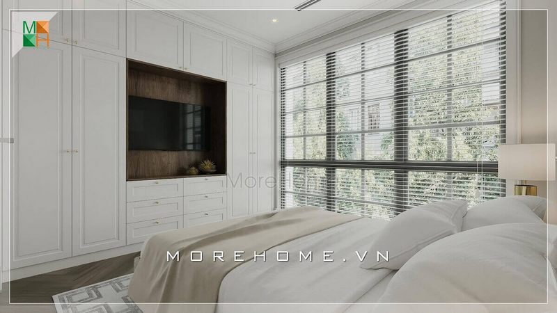 Ánh sáng luôn được tận dụng tối đa với thiết kế cửa sổ lớn trong phòng ngủ hiện đại.