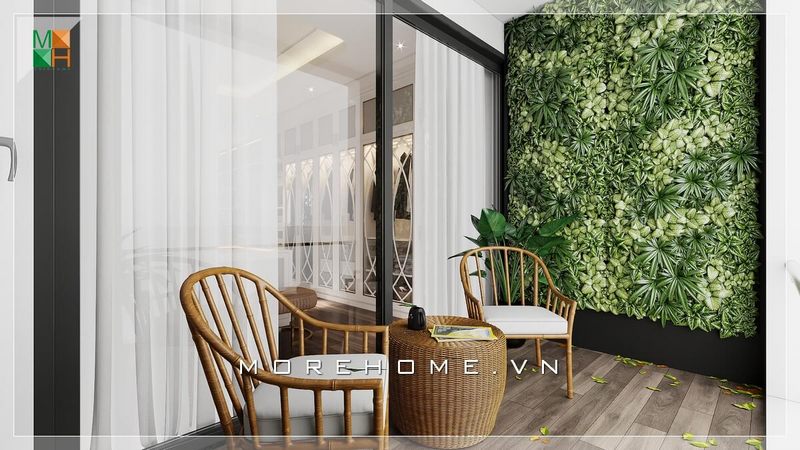 Tận hưởng mẫu thiết kế không gian ban công gần gũi thiên nhiên với cách bày trí giàn hoa lá xanh tươi mang lại cảm giác thư giãn thực thụ dành cho chung cư, nhà phố, biệt thự.