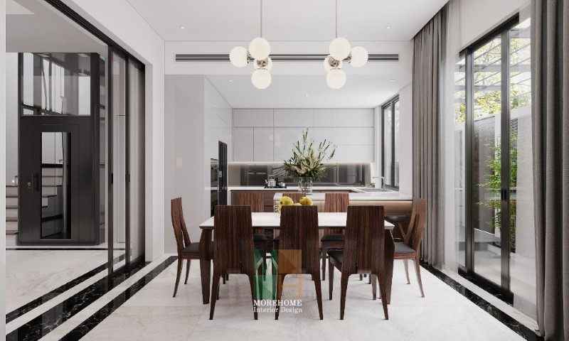 Tạo ra một không gian rộng rãi thoải mái bằng cách thiết kế phòng ăn với đầy đủ ánh sáng.