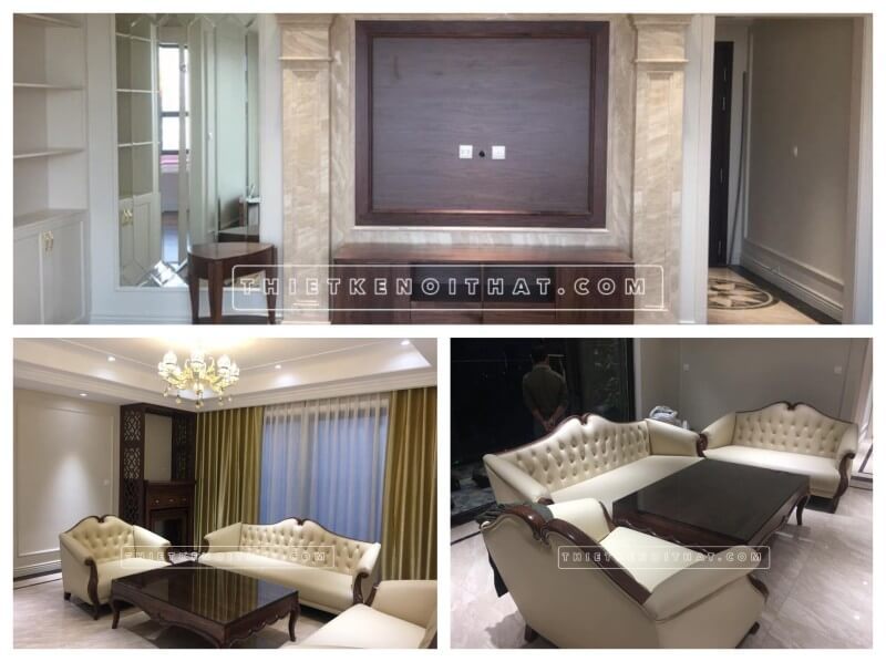 Biệt thự Ciputra đã được lắp đặt bộ sofa tân cổ điển bọc da.