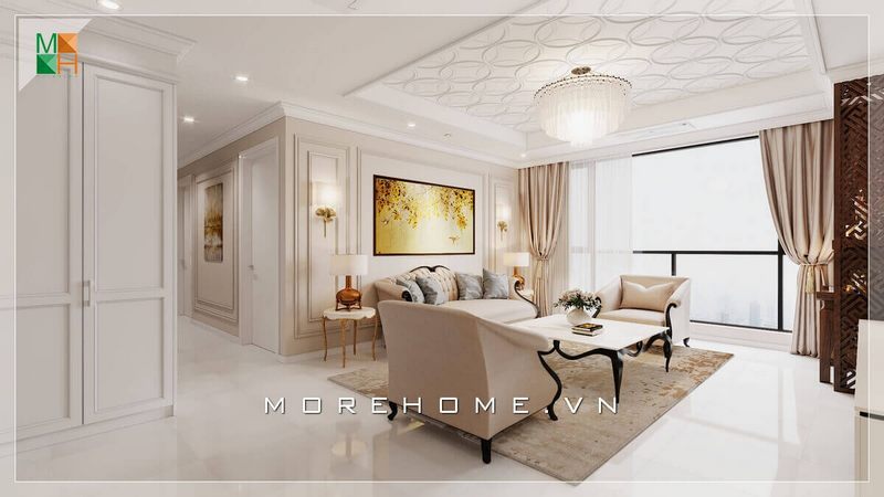 Thiết kế nội thất phòng khách biệt thự có phong cách tân cổ điển tinh tế, sang trọng và đẳng cấp.